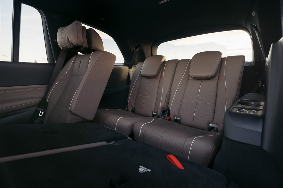 Auch in der zweiten und dritten Sitzreihe genießen Passagiere denselben hohen Infotainment-Komfort wie der Fahrer – mit bis zu drei Touchscreens und intuitiver Sprachsteuerung („Hey Mercedes“ ist jetzt auch von hinten vollumfänglich nutzbar).