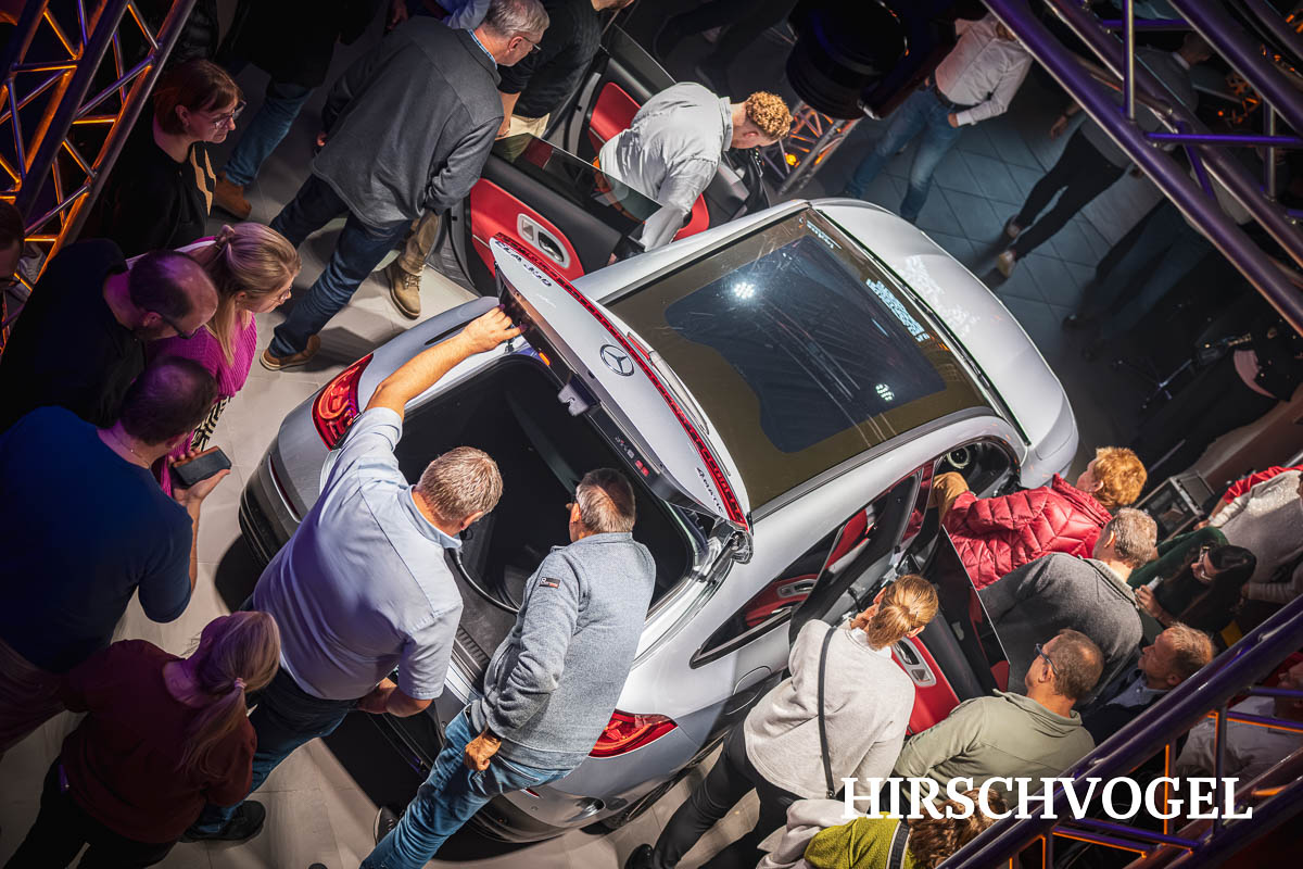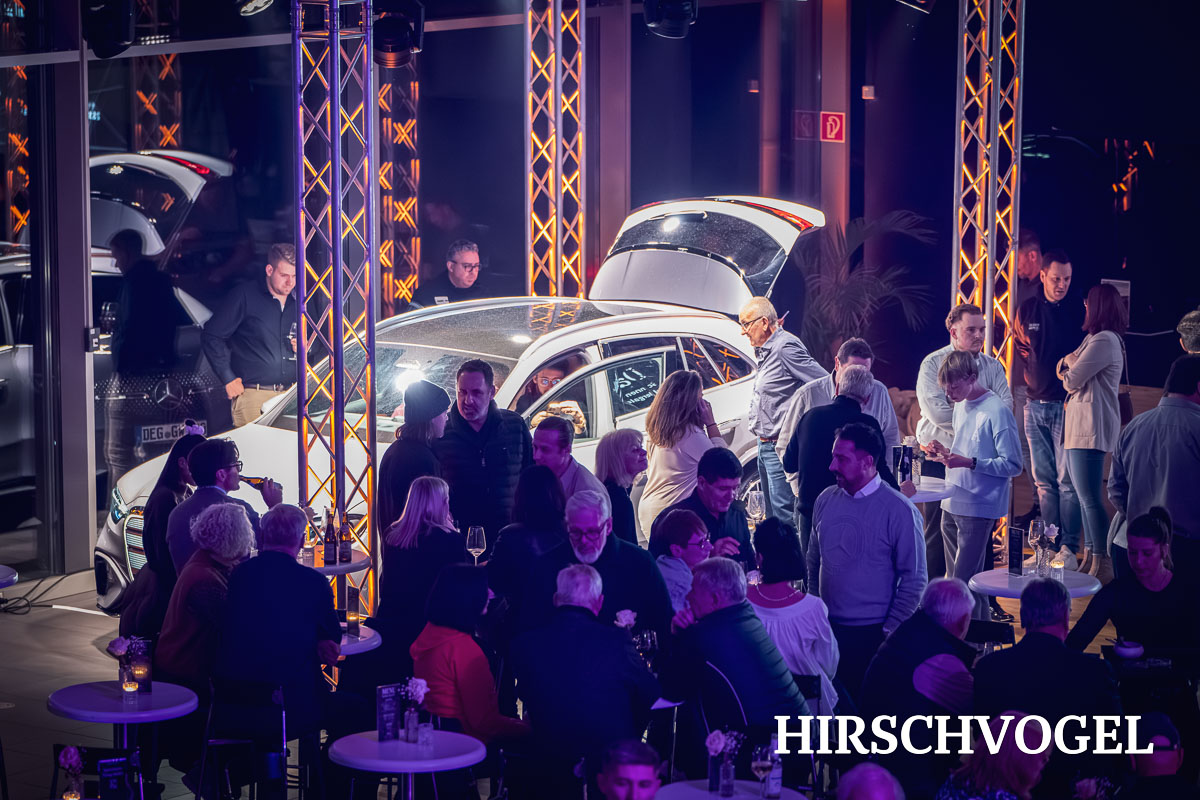 HIRSCHVOGEL Geschäftsführerin Antonia Kilger eröffnete den Abend mit einem Blick auf die aktuell größte Produktoffensive in der Geschichte von Mercedes-Benz “ und zeigte sich zugleich sichtlich stolz über die Resonanz der zahlreichen Gäste: „Es freut uns sehr, dass so viele Kundinnen und Kunden ihren Abend mit uns verbringen und die Premiere dieser beiden Modelle gemeinsam mit uns feiern.“ Anschließend stellte Verkaufsleiter Stefan Kerscher unser Verkaufs- und Serviceteam vor, das sich intensiv auf die Beratung rund um den neuen GLC und den neuen CLA vorbereitet hat.