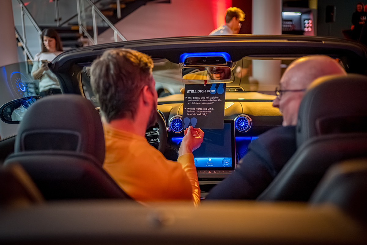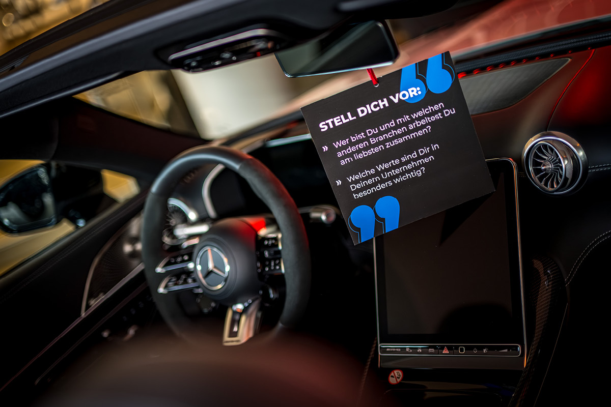 Das Prinzip war so simpel wie effektiv: Die Teilnehmer nahmen in den Fahrzeugen Platz, tauschten sich in intensiven Kurz-Interviews aus und wechselten beim Signal die Position. Durch das ständige Neu-Zusammensetzen der Gruppen entstanden in kürzester Zeit wertvolle Anknüpfungspunkte über verschiedene Branchen hinweg. Die moderne Kulisse des neuen GLB, des vielseitigen GLC und des sportlichen CLA Shooting Brake bot dabei nicht nur Gesprächsstoff, sondern auch den perfekten Raum für einen Austausch auf Augenhöhe.